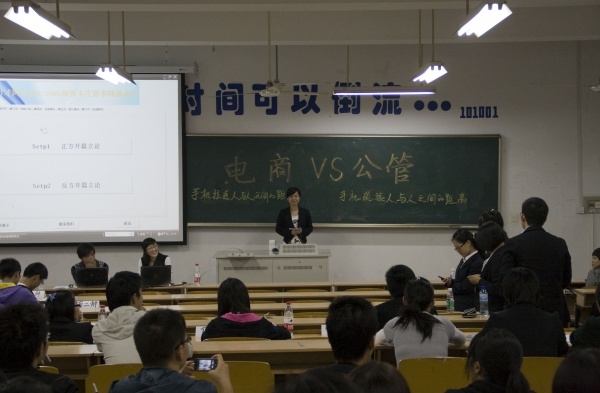 2010年10月11日下午3:35分,由经济管理系学生会学习实践部举办的第三届经济管理系辩论赛初赛在文昌院103多媒体教室拉开了帷幕。担任本次辩论赛评委的有院学习部代表,第二、三届经管系学生会主席团成员以及第二届学习实践部部长。
