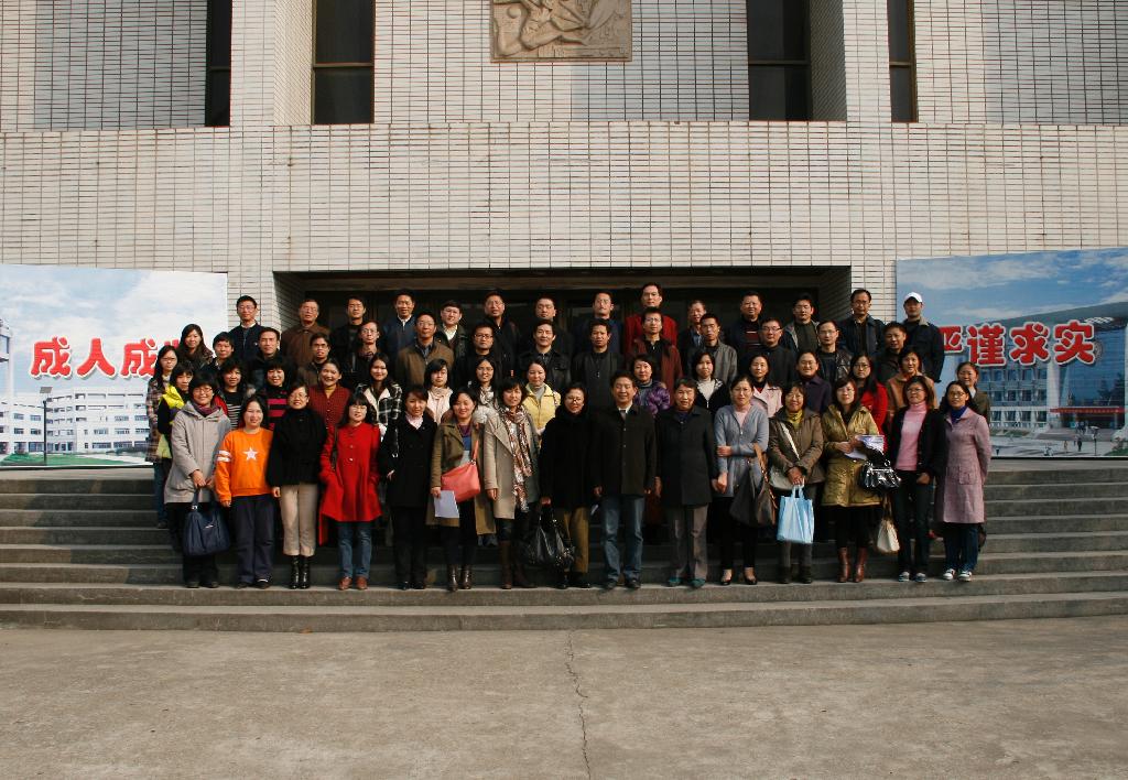全体老师在后藤体育馆前合影留念