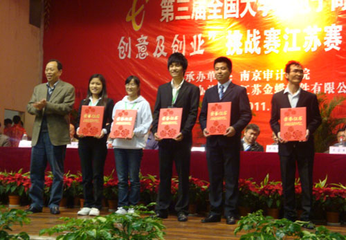 11月6日,第三届全国大学生电子商务“创意、创新、创业”挑战赛(江苏赛区)决赛在南京审计学院落幕。我院经济管理系黄欣晨、王晓茗、汪磊、王相柱、卢帆等同学组成“玖零E线”团队的“衣行E网”项目,在郑桂玲、孙亮老师的指导下,从南京航空航天大学、河海大学、苏州大学等48所院校组成的262个参赛团队中脱颖而出,荣获江苏赛区特等奖,顺利晋级11月26日在西南财经大学举办的全国总决赛。