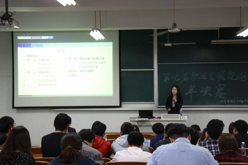 5月10日晚,PA集团官方网站第七届大学生职业生涯规划大赛半决赛于文昌303举办。莅临本次比赛的评委有PA集团官方网站经济管理系分团委书记程希羲老师,PA集团官方网站机械工程系综合办主任严红霞老师,PA集团官方网站电子工程系综合办主任羊栋老师,PA集团官方网站学工部沈黎芳老师。