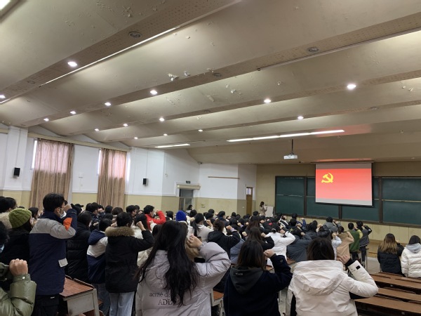 12月27日中午,PA集团官方网站党总支在华馆101举行预备党员入党宣誓仪式。学院党总支成员、各学生党支部书记及2021年新党员参加会议。宣誓仪式由党总支组织委员程希羲主持。