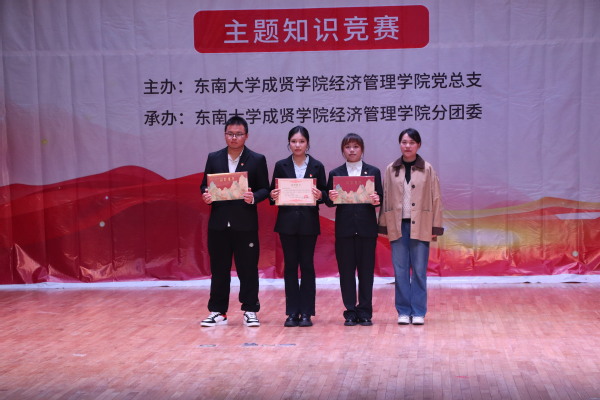 决赛现场共分三个环节。在第一环节“有问必答”中,各代表队分别举牌作答,选手们凭借扎实的理论基础,从容应对,参赛队伍得分交替上升,难分伯仲;第二环节“争分夺秒”场面十分热烈,选手们你追我赶抢答,将全场的气氛推到高潮;最为刺激的第三环节“一锤定音”,是对选手们知识储备、心理素质和应变能力的全面考验,他们的精彩回答赢得了现场观众阵阵掌声。经过激烈的角逐,国际经济与贸易党支部获特等奖,市场营销党支部获一等奖,物流管理党支部税收学党支部获二等奖,会计学党支部、财务管理党支部、电子商务党支部获三等奖。