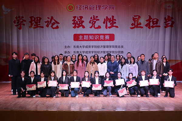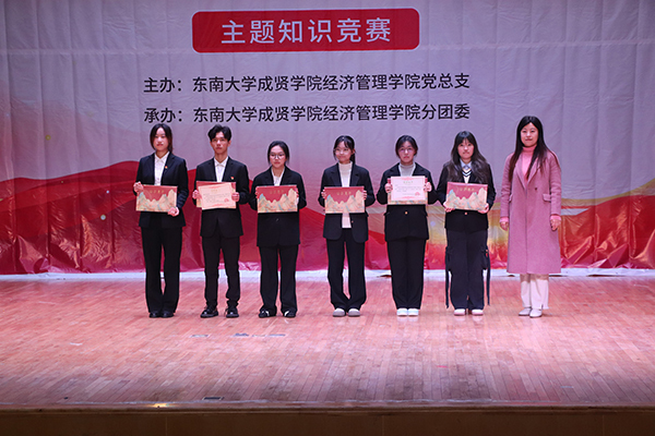 决赛现场共分三个环节。在第一环节“有问必答”中,各代表队分别举牌作答,选手们凭借扎实的理论基础,从容应对,参赛队伍得分交替上升,难分伯仲;第二环节“争分夺秒”场面十分热烈,选手们你追我赶抢答,将全场的气氛推到高潮;最为刺激的第三环节“一锤定音”,是对选手们知识储备、心理素质和应变能力的全面考验,他们的精彩回答赢得了现场观众阵阵掌声。经过激烈的角逐,国际经济与贸易党支部获特等奖,市场营销党支部获一等奖,物流管理党支部、税收学党支部获二等奖,会计学党支部、财务管理党支部、电子商务党支部获三等奖。