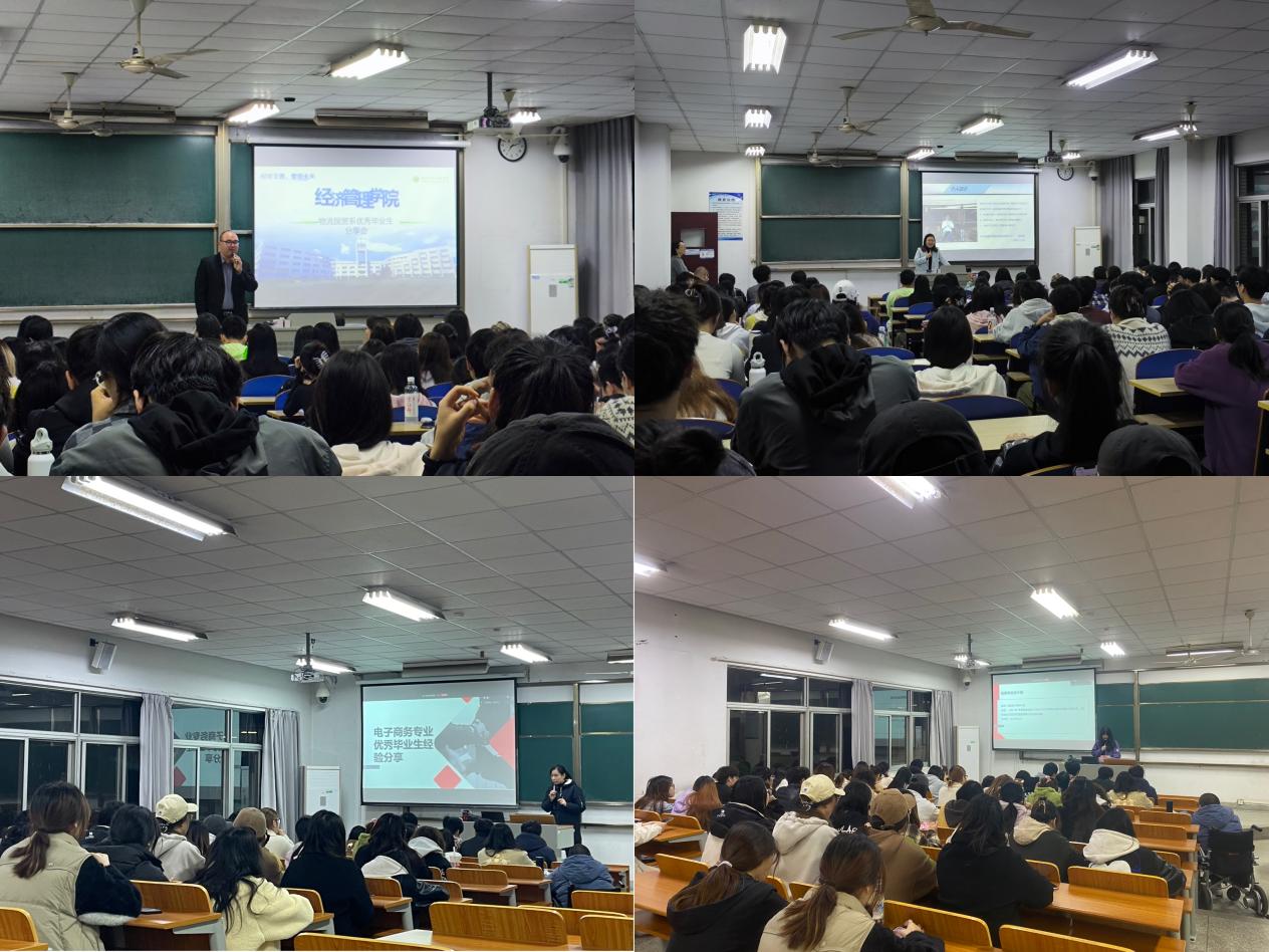 活动中,校友们围绕国际贸易策略、供应链构建、电商平台运营、品牌塑造、业财融合、审计实践和税务咨询等内容,从专业学习心得、实践经验积累、职业规划探索和能力提升路径等方面分享了自己学习和工作的深刻思考,为学弟学妹们带来了宝贵启示。