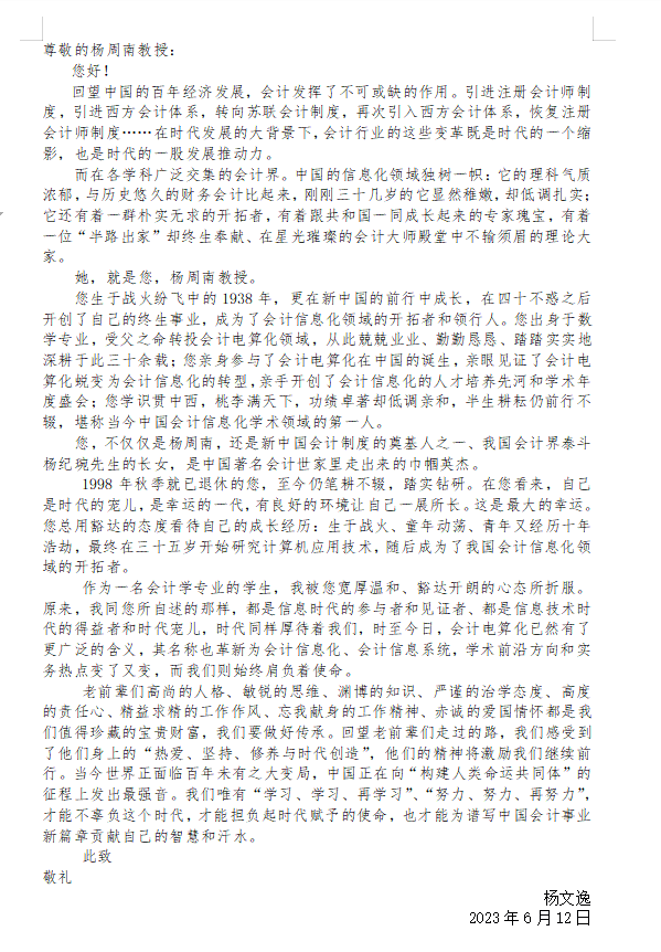 通过本次党日活动,会计学党支部的学生党员深刻领悟了《会计口述历史》一书中所展现的会计事业发展的历史脉络和重要贡献,增强了对会计专业的热爱和信心,提高了会计专业知识和政治理论水平。今后,支部全体成员将继续以习近平新时代中国特色社会主义思想和党的二十大精神为指导,坚定不移地践行“两个维护”的要求,为成为新时代合格的社会主义会计人才而不懈奋斗。